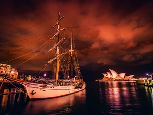 lake, clouds, cane, Boat