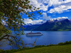 sun, boats, River, west, Spain