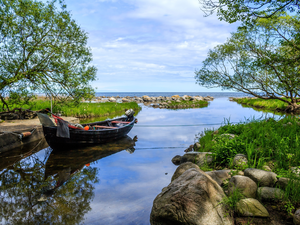 Houses, River, viewes, Desert, trees, Aswan, Egypt, boats
