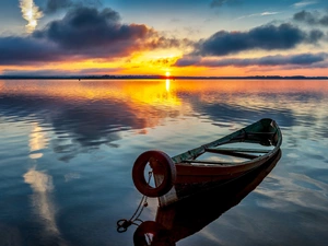 trees, Great Sunsets, branches, Boat, viewes, lake