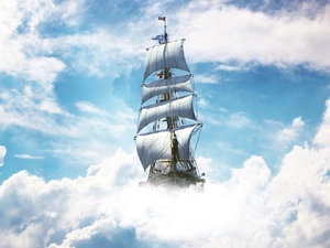 dark, port, Yachts, clouds