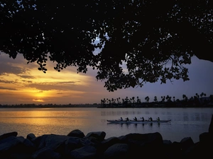 Great Sunsets, sea, clouds, grass, Boat, Gulf