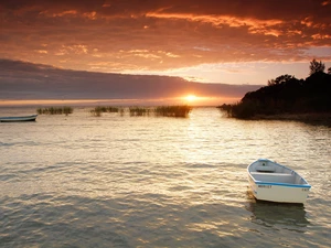 lake, Great Sunsets, Platform, Boats