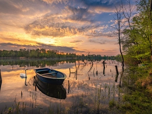Boat, Platform, forest, lake