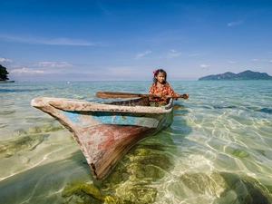Boat, Mountains, woods, lake
