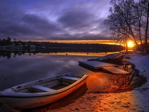 The Hills, Great Sunsets, pier, Motor boat, lake