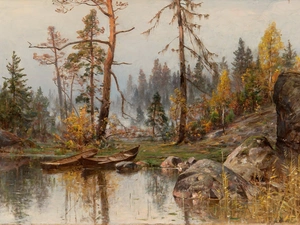 forest, Platform, esmerald, Mountains, Kayaks, lake, Canada