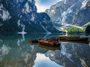sea, sailing vessel, Mountains