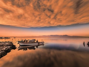 Boat, lake, forest, Platform