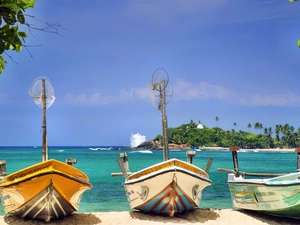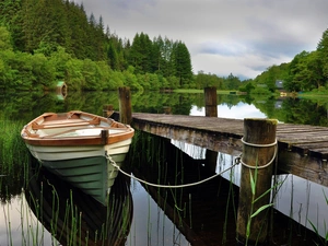 Mountains, passengers, object, River, vessels, buildings, touristic