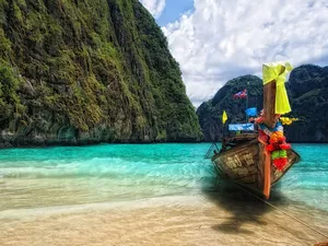 Rocks, sea, boats