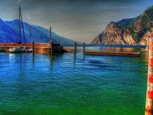 blue, Sky, boats, Mountains, Harbour