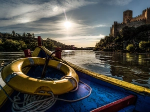 clouds, Slovakia, lake, forest, boats