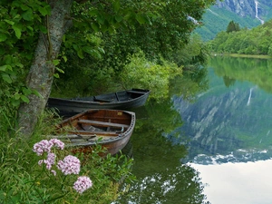 viewes, lake, snow, trees, winter, Boat, Great Sunsets