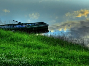 Boat, forest, autumn, color, viewes, angler, lake, trees