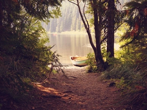 grass, lake, trees, viewes, Leaf, Boat