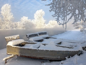 Boat, trees, Spring, viewes, grass, Platform, lake, willow